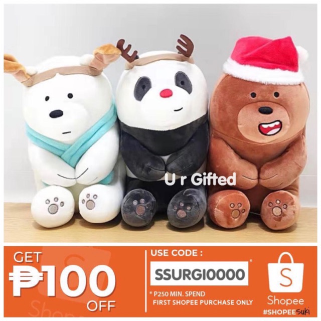 We bare bears stuffed toy shopee. We bare bear Christmas Miniso Official Distributor for Miniso Products WE BARE BEARS CHRISTMAS EDITION 100 ORIGINAL Soft cute and lovely Panda and Grizzly hand warmer pillows to give you the warmest care. We Bare Bears Asst. We Bare Bears Stuffed Toy Soft Plush.